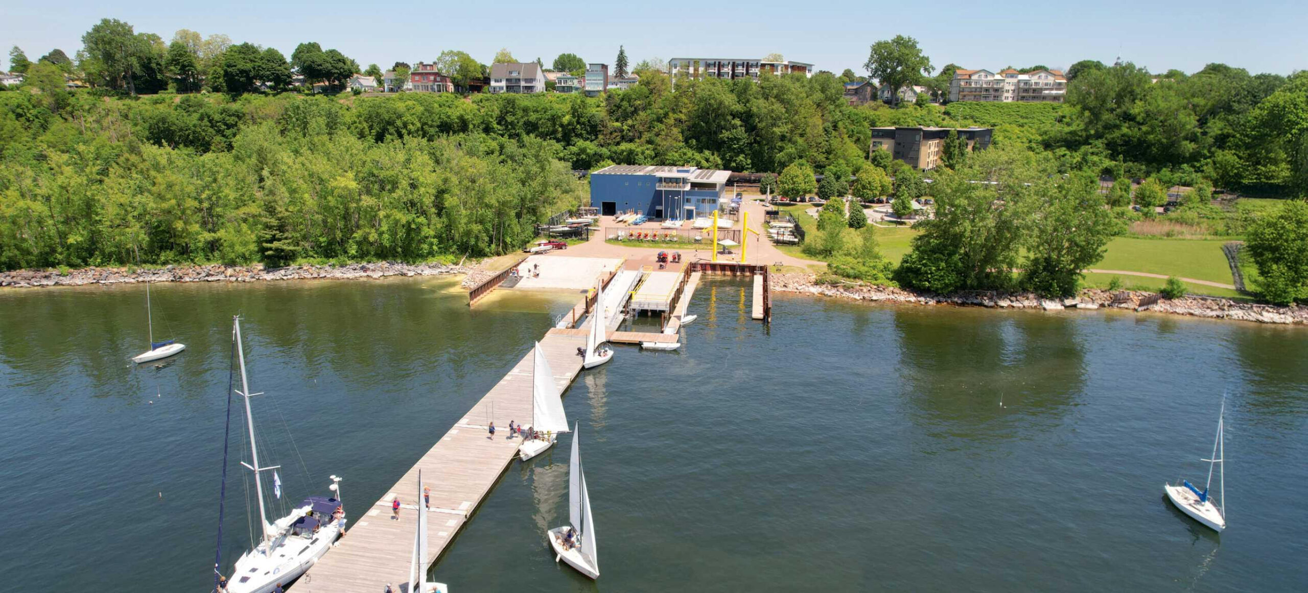 The Community Sailing Center is at the northern end of the Burlington Breakwater. Our docks are just east of the breakwater’s northern lighthouse.